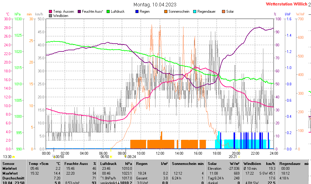 | Minimal- und Maximalwerte Montag, 10. April 2023 23:58 Uhr |
