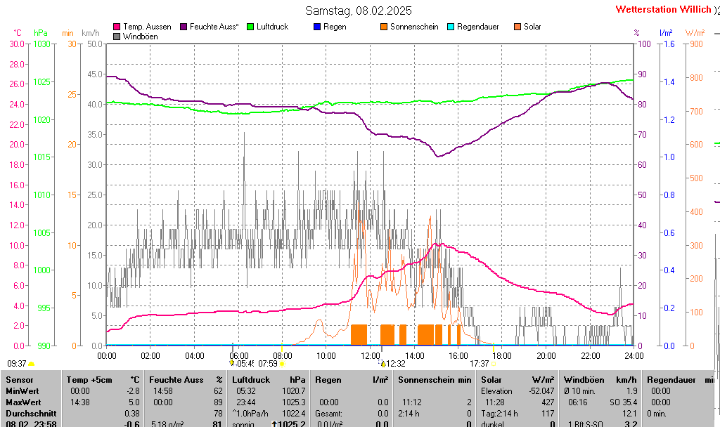 | Minimal- und Maximalwerte Samstag, 8. Februar 2025 23:58 Uhr |