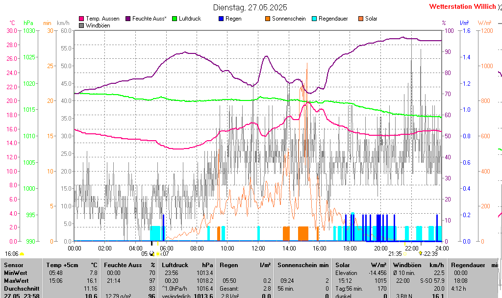 | Minimal- und Maximalwerte Dienstag, 27. Mai 2025 23:58 Uhr |