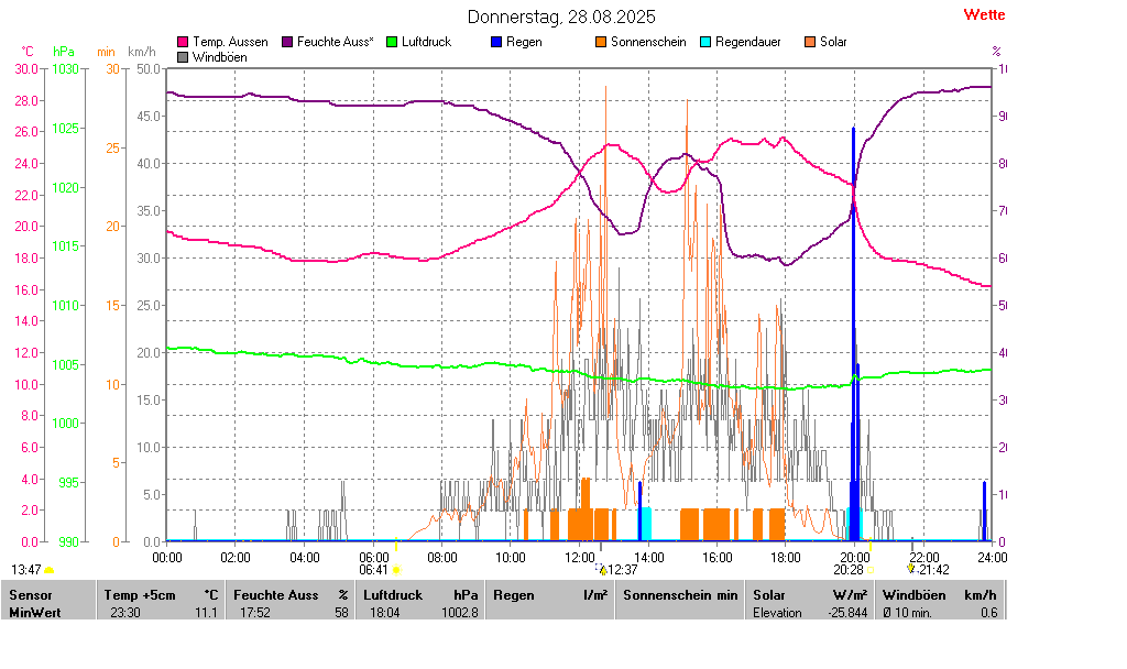 | Minimal- und Maximalwerte Donnerstag, 28. August 2025 23:58 Uhr |