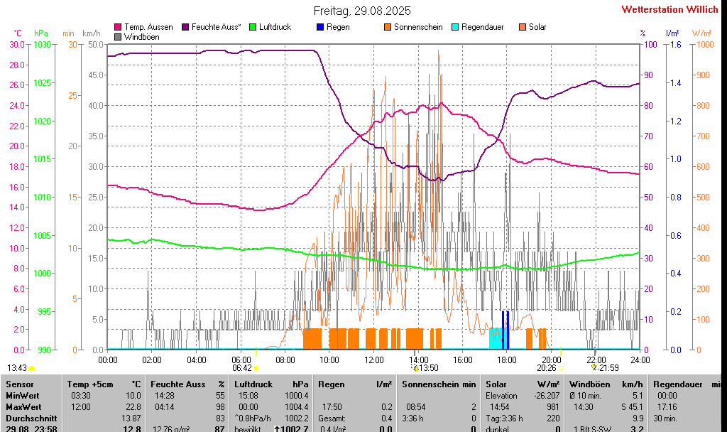 | Minimal- und Maximalwerte Freitag, 29. August 2025 23:58 Uhr |