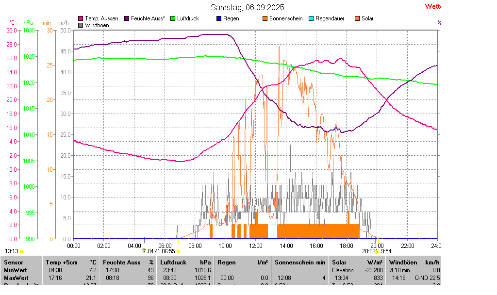 | Minimal- und Maximalwerte Samstag, 6. September 2025 23:58 Uhr |