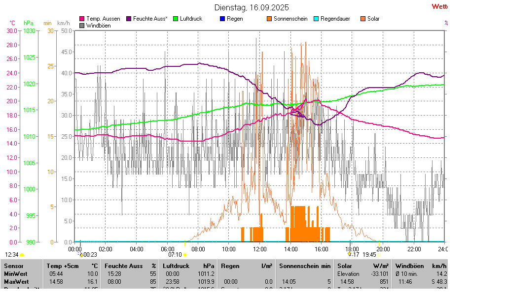 | Minimal- und Maximalwerte Dienstag, 16. September 2025 23:58 Uhr |