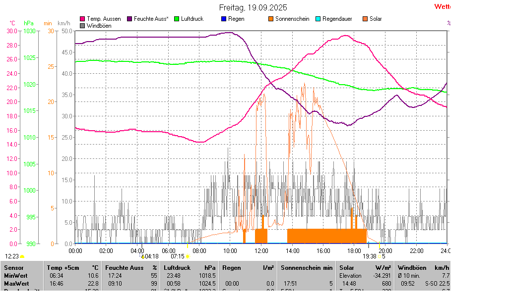 | Minimal- und Maximalwerte Freitag, 19. September 2025 23:58 Uhr |