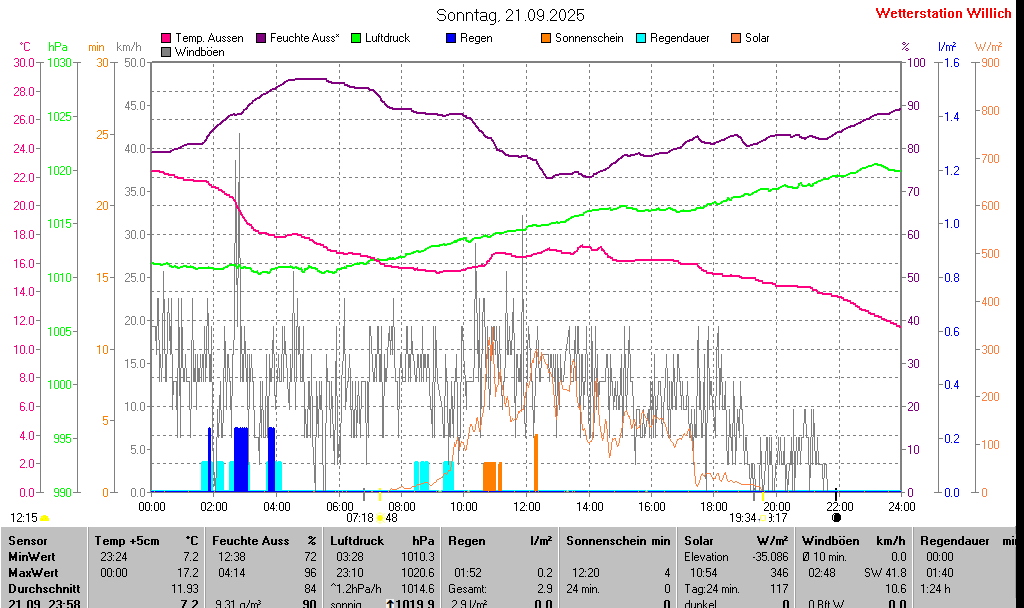 | Minimal- und Maximalwerte Sonntag, 21. September 2025 23:58 Uhr |