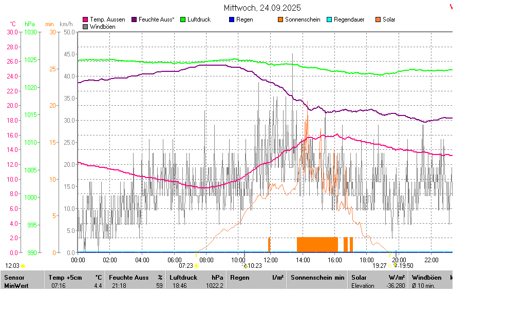| Minimal- und Maximalwerte Mittwoch, 24. September 2025 23:58 Uhr |