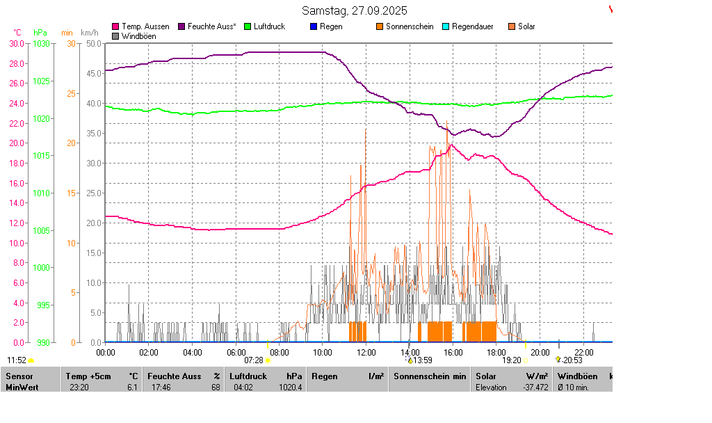 | Minimal- und Maximalwerte Samstag, 27. September 2025 23:58 Uhr |