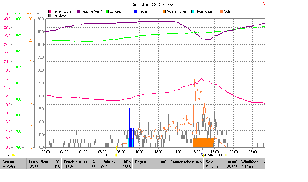 | Minimal- und Maximalwerte Dienstag, 30. September 2025 23:58 Uhr |