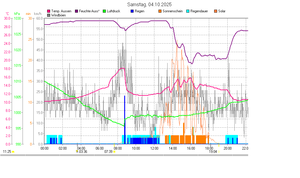 | Minimal- und Maximalwerte Samstag, 4. Oktober 2025 23:58 Uhr |