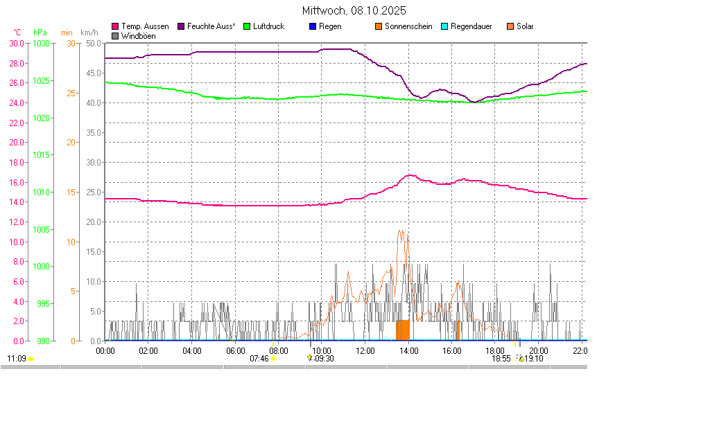 | Minimal- und Maximalwerte Mittwoch, 8. Oktober 2025 23:58 Uhr |