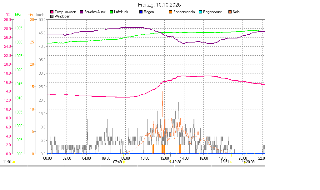 | Minimal- und Maximalwerte Freitag, 10. Oktober 2025 23:58 Uhr |