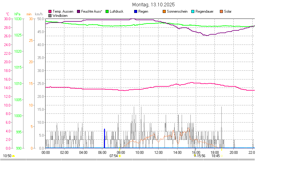 | Minimal- und Maximalwerte Montag, 13. Oktober 2025 23:58 Uhr |
