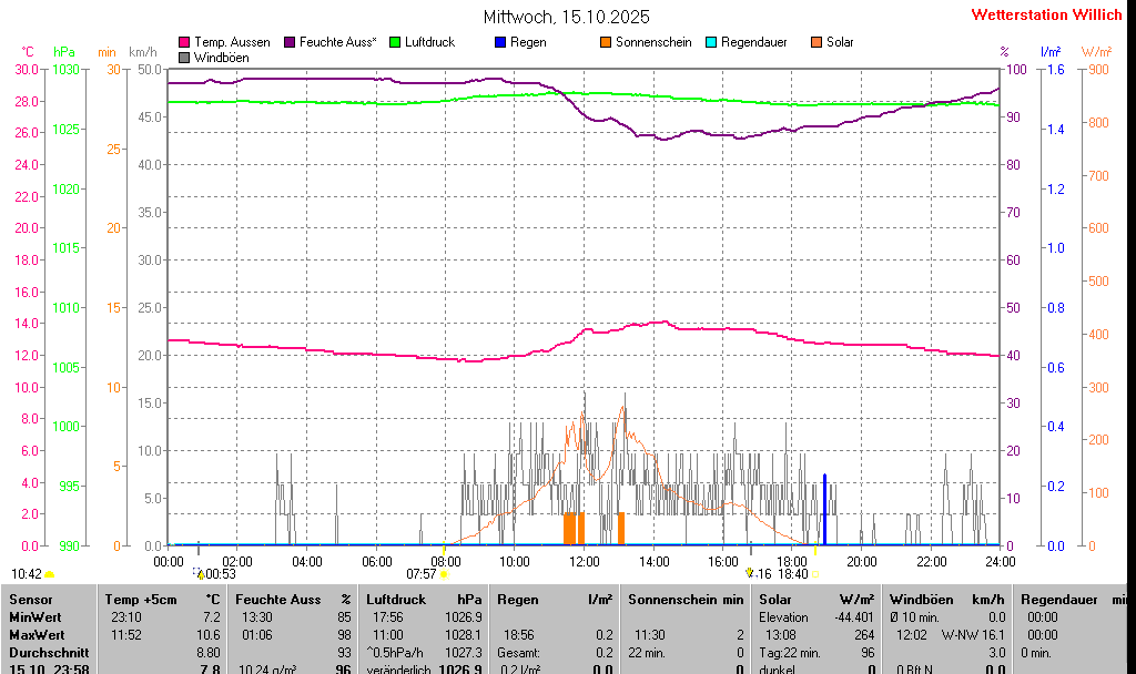 | Minimal- und Maximalwerte Mittwoch, 15. Oktober 2025 23:58 Uhr |