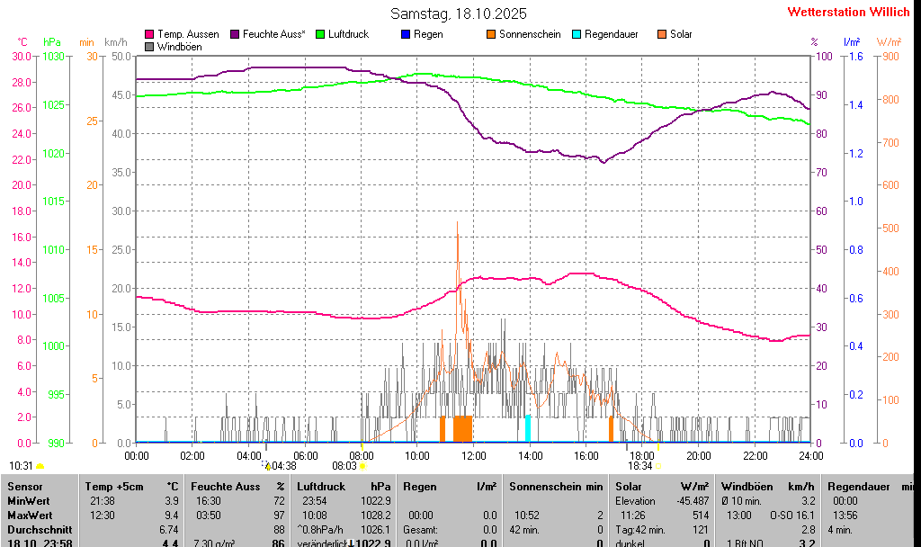 | Minimal- und Maximalwerte Samstag, 18. Oktober 2025 23:58 Uhr |
