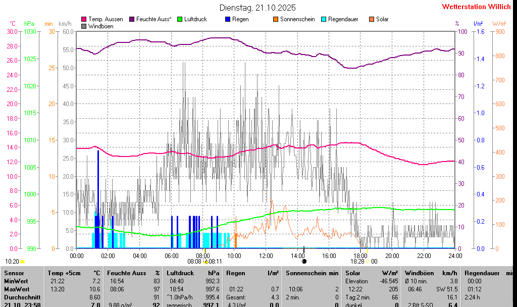 | Minimal- und Maximalwerte Dienstag, 21. Oktober 2025 23:58 Uhr |
