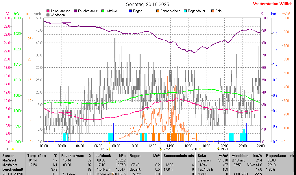 | Minimal- und Maximalwerte Sonntag, 26. Oktober 2025 23:58 Uhr |