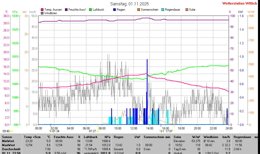 | Minimal- und Maximalwerte Samstag, 1. November 2025 23:58 Uhr |