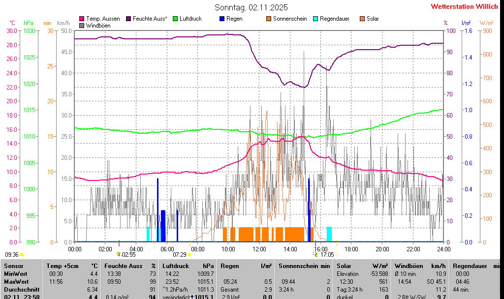 | Minimal- und Maximalwerte Sonntag, 2. November 2025 13:50 Uhr |