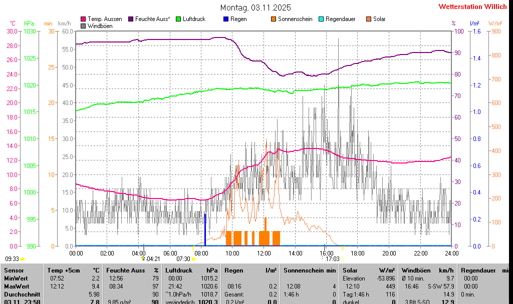 | Minimal- und Maximalwerte Montag, 3. November 2025 23:58 Uhr |