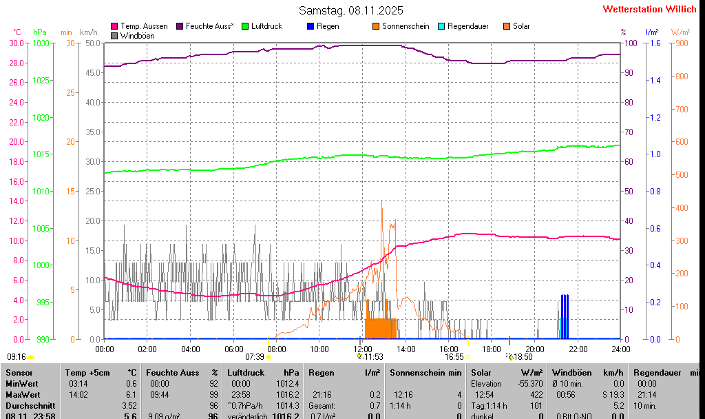 | Minimal- und Maximalwerte Samstag, 8. November 2025 23:58 Uhr |