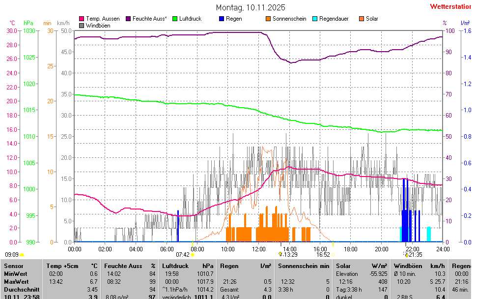 | Minimal- und Maximalwerte Montag, 10. November 2025 23:58 Uhr |