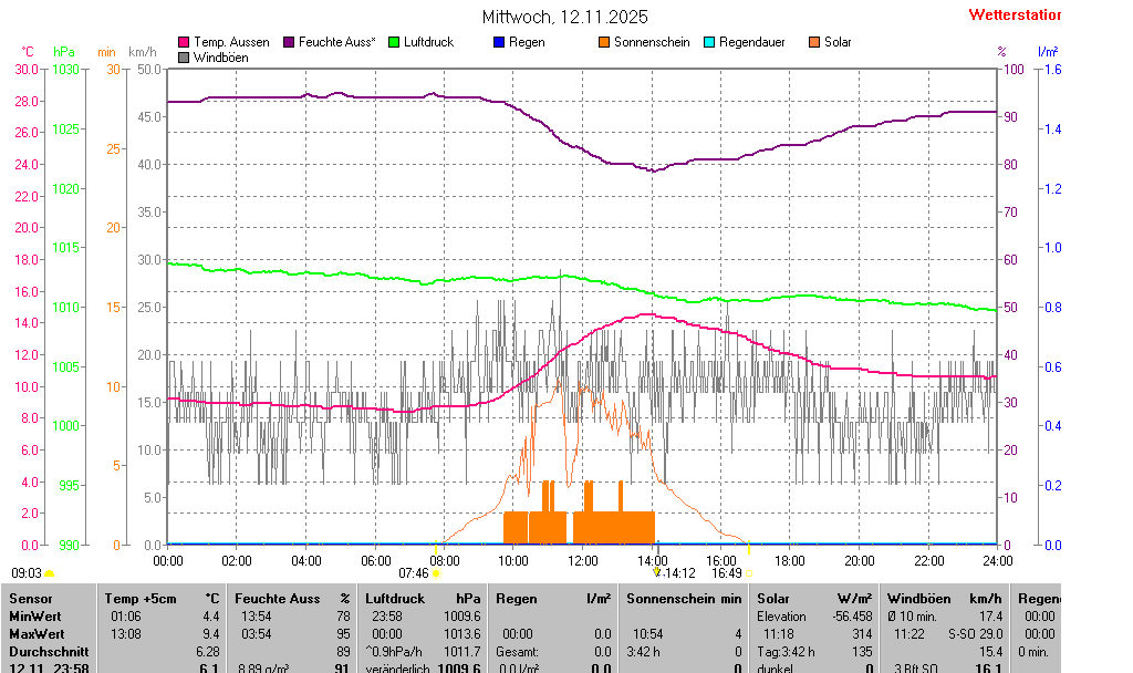 | Minimal- und Maximalwerte Mittwoch, 12. November 2025 23:58 Uhr |