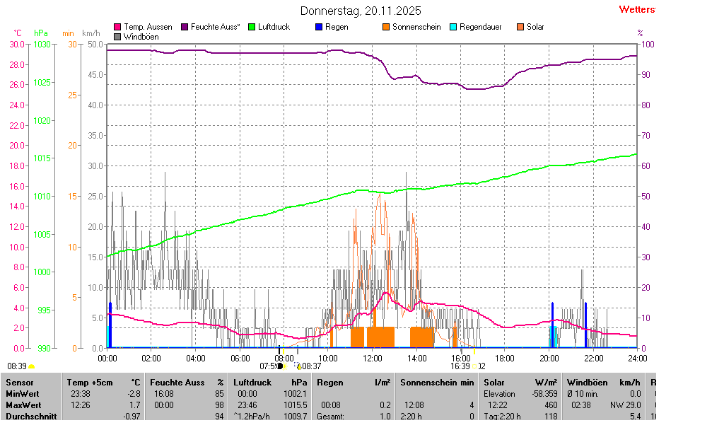 | Minimal- und Maximalwerte Donnerstag, 20. November 2025 23:58 Uhr |