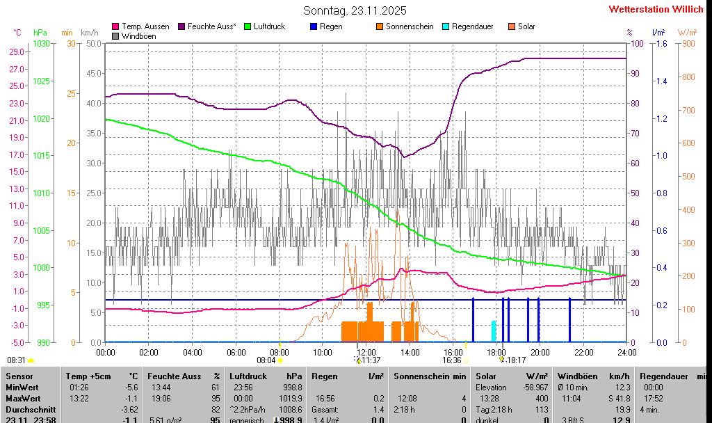 | Minimal- und Maximalwerte Sonntag, 23. November 2025 23:58 Uhr |