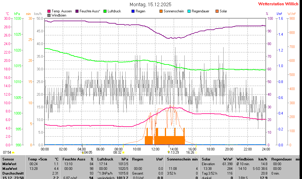 | Minimal- und Maximalwerte Montag, 15. Dezember 2025 23:58 Uhr |