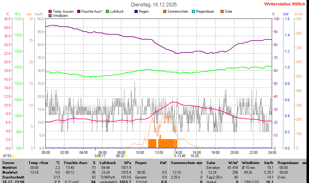 | Minimal- und Maximalwerte Dienstag, 16. Dezember 2025 23:58 Uhr |