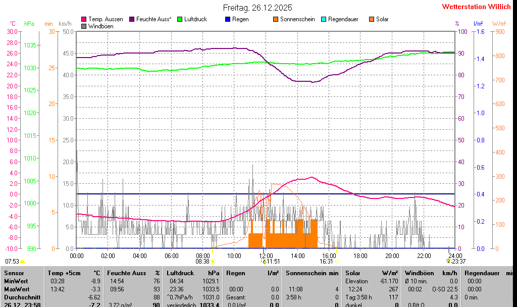 | Minimal- und Maximalwerte Freitag, 26. Dezember 2025 23:58 Uhr |