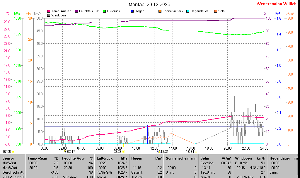 | Minimal- und Maximalwerte Montag, 29. Dezember 2025 23:59 Uhr |