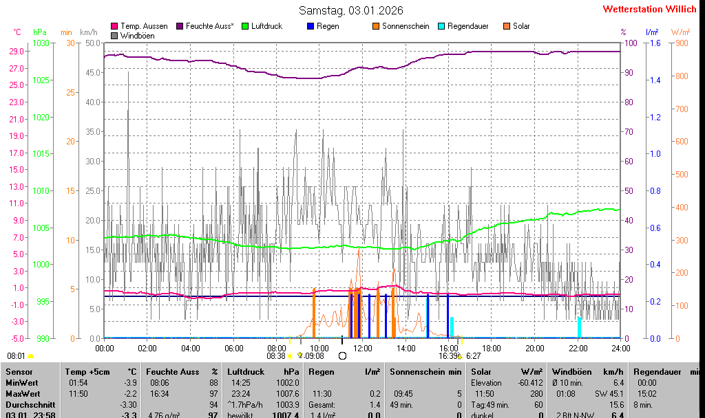 | Minimal- und Maximalwerte Samstag, 3. Januar 2026 23:58 Uhr |