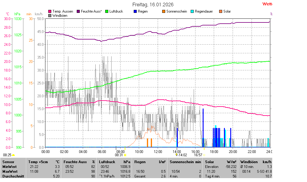 | Minimal- und Maximalwerte Freitag, 16. Januar 2026 23:58 Uhr |