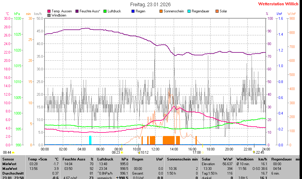 | Minimal- und Maximalwerte Freitag, 23. Januar 2026 23:58 Uhr |