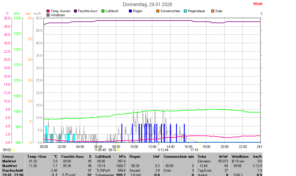 | Minimal- und Maximalwerte Donnerstag, 29. Januar 2026 23:58 Uhr |