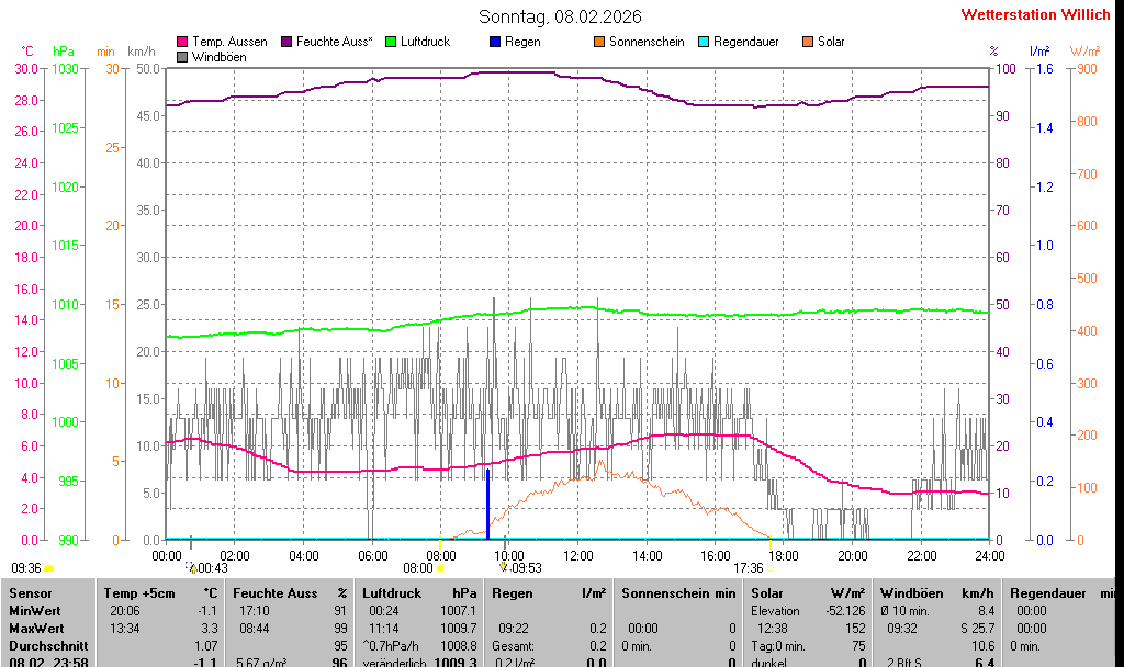 | Minimal- und Maximalwerte Sonntag, 8. Februar 2026 23:58 Uhr |