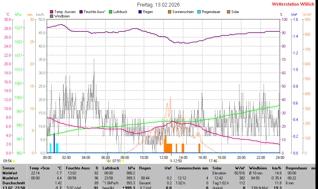 | Minimal- und Maximalwerte Freitag, 13. Februar 2026 23:58 Uhr |