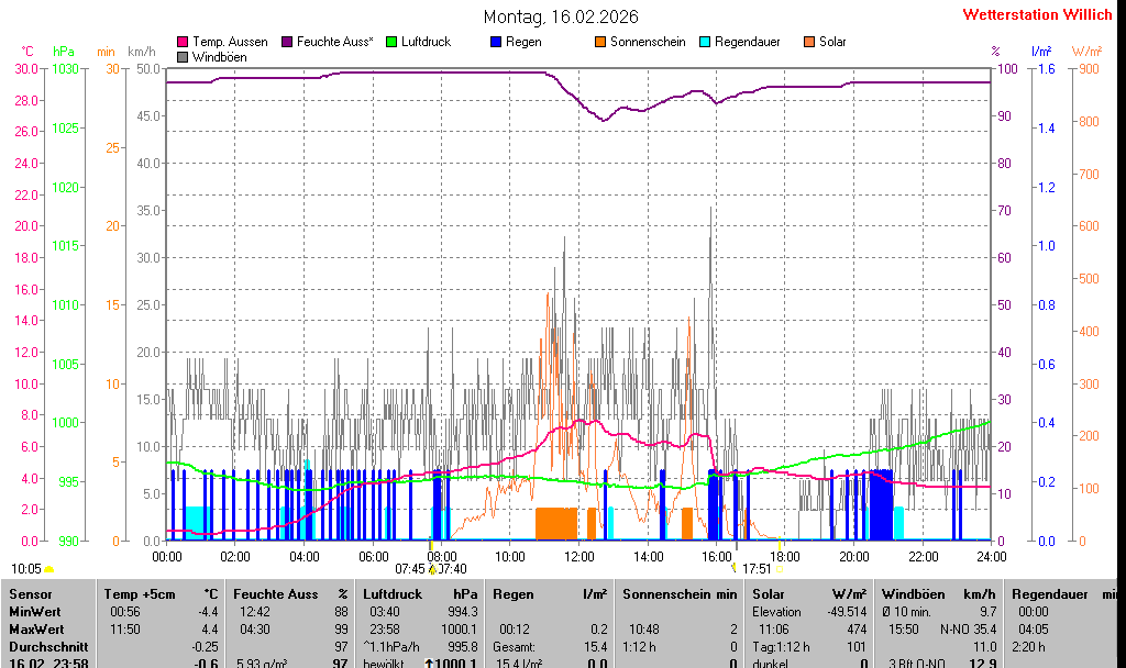 | Minimal- und Maximalwerte Montag, 16. Februar 2026 23:58 Uhr |